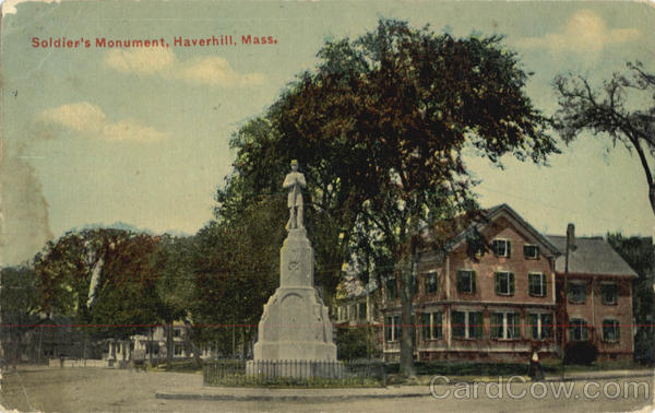 Front: Soldier's Monument, Haverhill, Mass. Back: 1.50 MFA SEP 25 1913 MA It is a beautiful day this am we took a nice doing went down to see Mrs Rowell and then look a drive along by the river. A. 1CENTI 221 Mountain Mart Halden