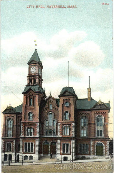 Front: 17004 CITY HALL, HAVERHILL, MASS. Back: 200 Made in Germany. The Robbins Bros Co., Boston, Mass.