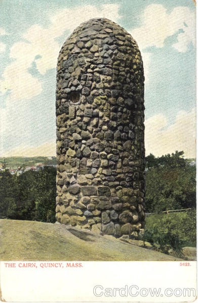 Front: THE CAIRN, QUINCY, MASS. 5623. Back: TG Pub. by Robbins Bros, Boston, Mass and Germany. Dost Card. 200 One Cent for United States, and Island Possessions, Cuba, Canada and For Foreign.