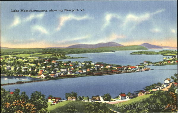 Front: Lake Memphremagog, showing Newport. Vt. Back: MADE IN U.S. A OOOOOO PUB, BY THE RIVERSIDE PAPER CO., BURLINGTON, VT. TICHNOR QUALITY VIEWS" MADE ONLY BY TICHNOR BROTHERS. INC BOSTON, MASS. 66395