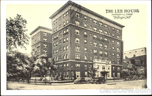 Front: THE LEE H OUSE FIFTEENTH & L STREELS Halhington DC 日EHA Back: M1843 THE LEE HOUSE WASHINGTON, D. C. 250 Rooms 250 Baths Central But Quiet Location Near White House A FRIENDLY HOTEL MADE IN U.S.A. BY E. C. KROPP CO., MILWAUKEE. WIS ho