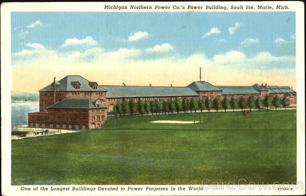 Front: Michigan Northern Power Co.'s Power Building, Sault Ste. Marie, Mich. One of the Longest Buildings Devoted to Power Purposes in the World 97980-N Back: PUBLISHED EXCLUSIVELY FOR A.E. YOUNG, SAULT STE. MARIE,ICH.