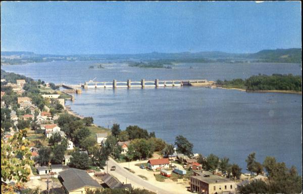 Locks and dam on the Mississippi River. Published by Universal Photo Service, La Crosse, Wisconsin Photograph by Arthur Langford S5404-1 HERE