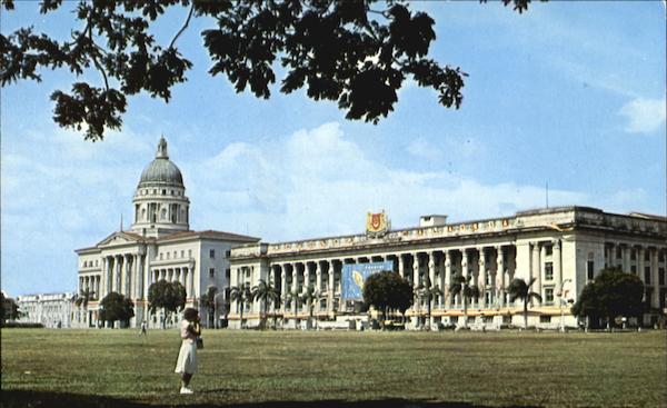 CITY HALL & SUPREME COURT Singapore A fine view of the City Hall & Supreme Court as seen from the Padang. SC 170 C-25249 Pub. by:- A.S.M.K. & Co. Singapore-6 HERE