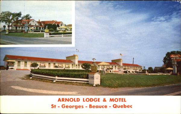 Front: ARNOLD LODGE & MOTEL St-Georges - Beauce - Quebec Annold MCTEL Back: ARNOLD LODGE & MOTEL City, St-Georges Bce High Way #23 2 miles south of Quebec Portland SC4500 SOUVENIR AGENCIES 1231 Bleury Street Montreal, Canada IN 4.S.A
