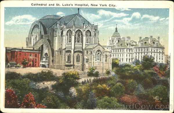 Front: Cathedral and St. Luke's Hospital, New York City. LOU 7001 Back: Copyright by Irving Underhill, N. Y. 200 Jo #43-NY HERE.