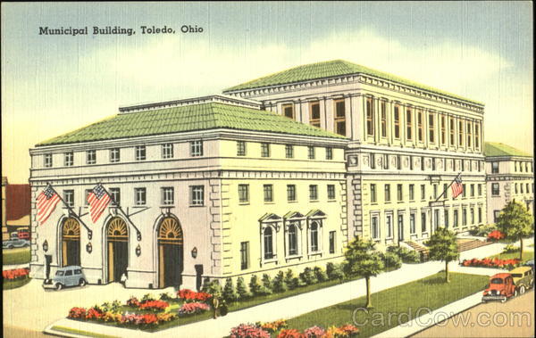 Front: Municipal Building, Toledo, Ohio Back: MADE IN U. S. A "TICHNOR QUALITY VIEWS” REG. U. S. PAT. OFF. MADE ONLY BY TICHNOR BROS., INC., BOSTON, MASS, 71102 PUB. BY HIRSCH NEWS AND BOOK STORE, TOLEDO, OHIO