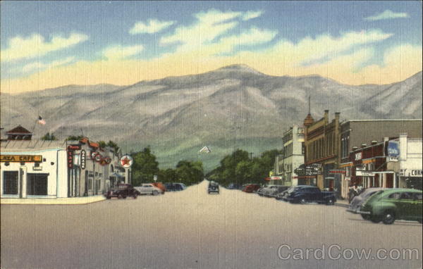 Front: PLAZA LAZA CAFELI CORN OARAGE Back: ALAMOGORDO, N. M. SACRAMENTO MOUNTAINS, 288--TENTH STREET, LOOKING TOWARD Зв-H806