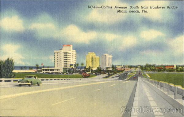 Front: DC-19-Collins Avenue South from Haulover Bridge Miami Beach, Fla. OC-H1210 Back: GULF STREAM CARD & DISTRIBUTING CO., MIAMI, FLORIDA