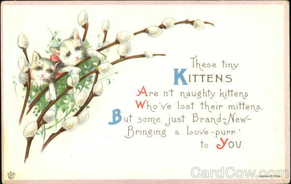 These tiny Kittens Are n't naughty kittens Who've lost their mittens, but some just Brand-New Bringing a Love-purr. To You.
