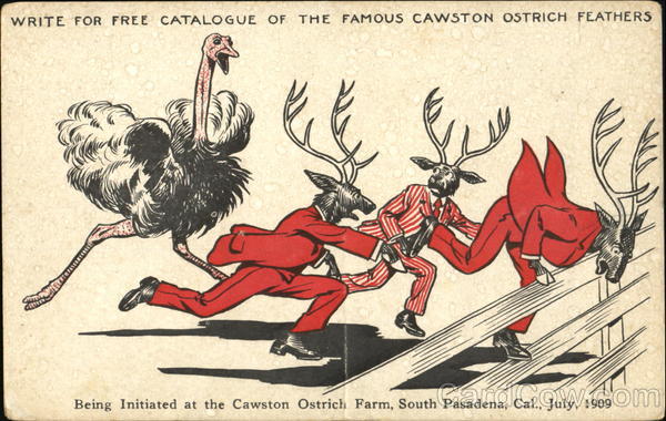 Write for free catalogue of the famous cawston ostrich feathers. Being initiated at the cawston ostrich Farm, south Pasadena, Cal., July 1909.