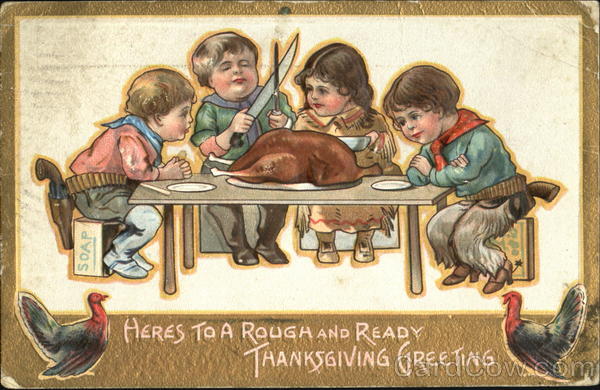 Front: SOAP HERES TO A ROUGH AND READY THANKSGIVING GREETING Back: WO ୦୪୯ THANKSGIVING SERIES" NOIO Mrs. Bring 1918 WASH to Miss Rhuby Wheeler vedio Wooley, Maski Роми лицами This side for the Address only.