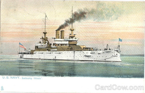 | Battleship "Illinois". Built at Newport News, Va. 375 feet long and 72 feet broad, with a displacement of more than 12,500 tons. Speed, about 17 knots per hour. Horse-power, 10,000. Cost, about $2,595,000. Carries four 13-inch and fourteen 6-inch guns as well as a considerable number of rapid-firers. Complement, 34 officers and 647 men. |