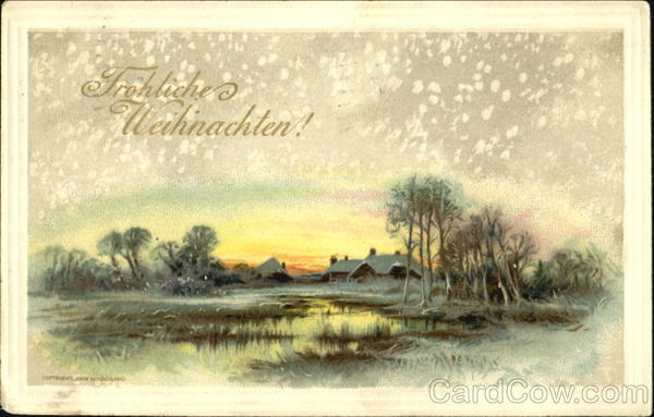 Front: Frohliche's Weihnachten! COPYRIGHT, JOHN MINISCH,1910 Back: PPP Meihnachts- wom. Grüß Ed. Vamma DEC 2 4-PM 1911 ON THIS SIDE ONE CEEN Mrt. Mas C.H. Harkstrocter, Mr.