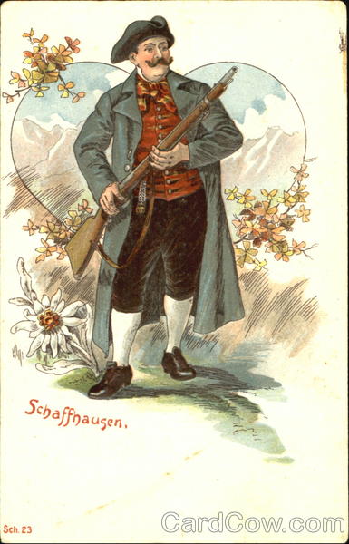 Front: Schaffhausen. Sch. 23 Back: Côté réservé à l'adresse. Carte postale. Weltpostverein. Unione postale universale. SCHWEIZ. SVIZZERA. Nur für die Adresse. Union postale universelle. SUISSE. Lato riservato all indirizzo.
