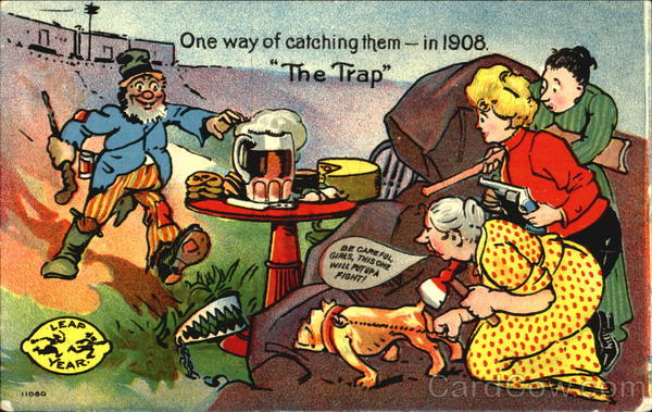 One way of catching them ? in 1908. "The Trap" Be Careful Girls, this one will put up a fight!"