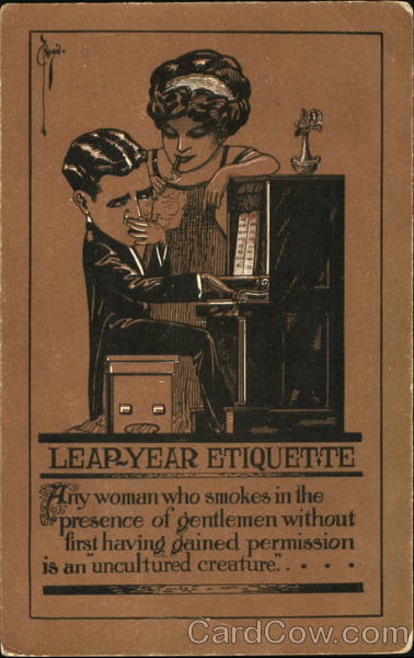 Any woman who smokes in the presence of gentlemen without first having gained permission is an uncultured creature".
