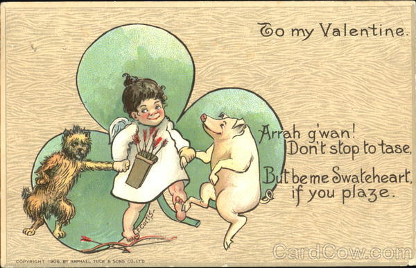 Arrah G'wan! Don't stop to tase, But be me Swateheart, if you plaze."