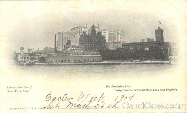 Lower Portion of New York City on Board D.S.S.Co.Old Dominion Line Daily Service between New York and Virginia