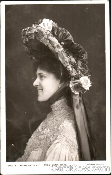 Front: 2001 S ROTARY PHOTO, E.C. MISS ZENA DARE. FOULSHAM & EANFIELD Back: ROTARY PHOTOGRAPHIC SERIES. Sh Josong Dear a Thanks very much for P. e hape you will like this. Hundead regards Kindest • Wellington a. Belds. ONL
