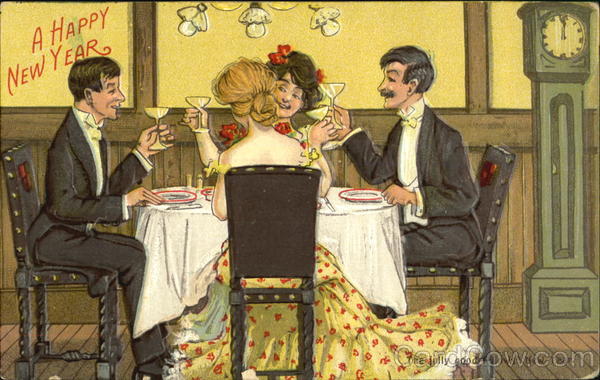 The jolly good felows New Year.Two Coupls at Dinner Table