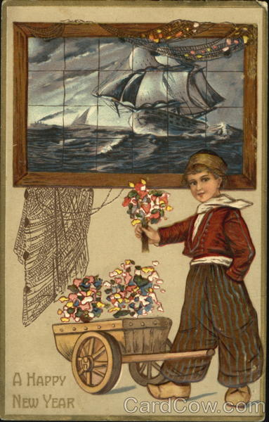 Front: A HAPPY NEW YEAR Back: hton Miller SIN PHI 4 PM 1912 THIS SPACE MAY BE USED FOR WRITING ONE CERA Rent Master Ross Fay Flych Sretus Plyph / has ran flyek n Magne teo