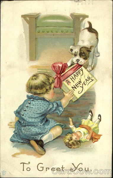 Front: To Greet You. A HAPPY YEAR Back: 200 WORLD PA 1915 NCING 9-POR ADDRESS ON POSHMA THAT ✓ FOR CORRESPONDENCE 1914 From your Cousin Series 35 C Martered. Gibbert Bordena 2547 Bryant An San Francisc Calaf.