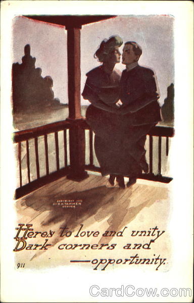Front: COPYRIGHT 1904 BYHH TAMMEN Heres to love and unity Dark corners and 911 -opportunity. Back: ee THIS SPACE CAN BE USED FOR A WRITTEN MESSAGE, USING ONE-CENT STAMP