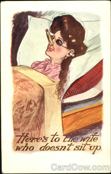 Front: 906 GOPYRIGHT 1966 Here's to the wife who doesn't sit up. Back: глу FOR THE ADDRESS Miss Viola Lippold Talls City Met.