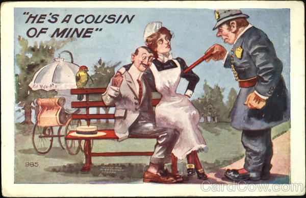 Front: "HE'S A COUSIN OF MINE" 985 COPYRINT 1009 TAMMEN DENTER Back: POST ARD THIS SPACE CAN BE USED FOR A WRITTEN MESSAGE, USING ONE-CENT STAMP 6-PM 1909 Miss Ida Hayman. 2479916 St