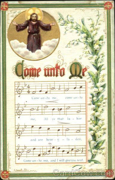 Front: Come unto Me 40 Come un-to me, come un-to me, All ye that la and are heav - Y bor la den, Come un - to me, and I will give you rest. Back: 2069 120. Stamp