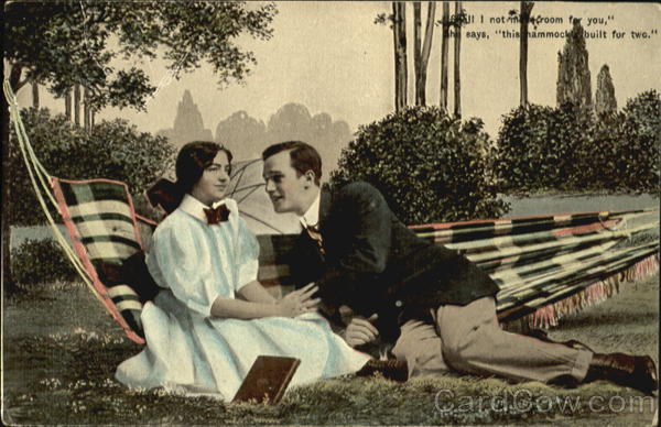 Front: Sll I not froom for you," says, "this hammock built for two." Back: POST-CARD. POSTKARTE. CARTE POSTALE. 050 FFL T.E L.,Emaille" Series 3013 Made in Germany