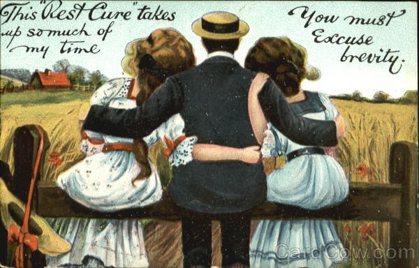 Front: This Rest Cure takes up so much of my time You must Excurevity! Back: THIS SPACE MAY BE USED FOR COMMUNICATION 100 SOB 1908 1560
