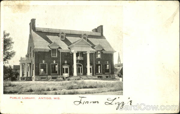 Front: PUBLIC LIBRARY, ANTIGO, WIS. Finom Lizz'r Back: Post-Gard 3.00 THIS SIDE IS EXCLUSIVELY FOR THE ADDRESS.