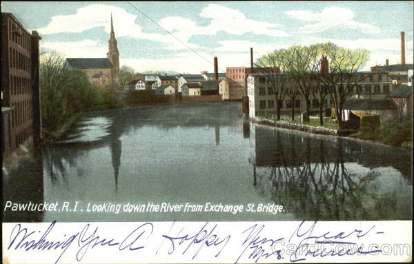 Pawtucket, R.I. Looking down the River from Exchange St.Bridge.