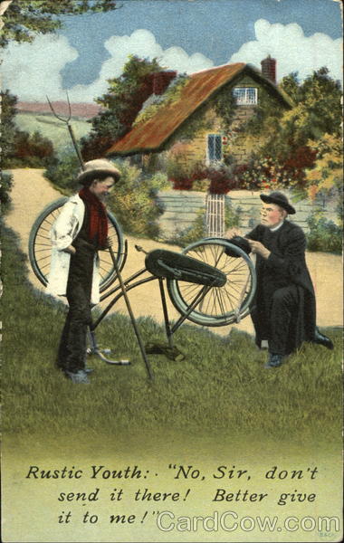 Front: Rustic Youth: "No, Sir, don't send it there! Better give it to me!" B&Co Back: AND NEW YORK 4088 BAMFORTH & CO. PUBLISHERS HOLMFIRTH (ENGLAND) COPYRIGHT 1910, BY BAMFORTH & CO. POST- STAMP