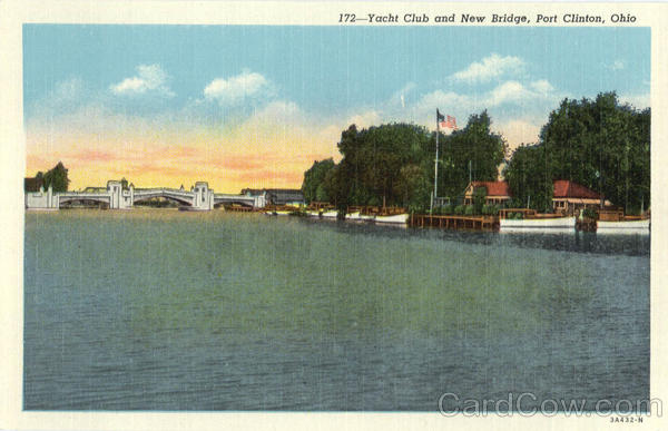 Front: 172 Yacht Club and New Bridge, Port Clinton, Ohio 3A432-N Back: GEO. H. TREMPER, SANDUSKY, OHIO, DISTRIBUTOR