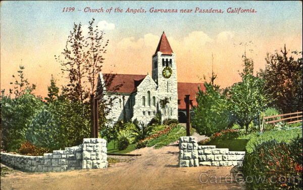 Front: 1199 - Church of the Angels, Garvanza near Pasadena, California. Back: >1¢ 2¢ PUBLISHED BY EDWARD H., MITCHELL SAN FRANCISCO CAL. 1199