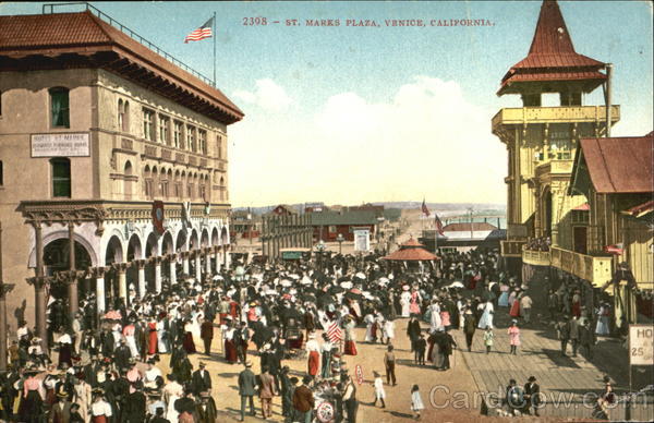 Front: HOTEL ST MARYS ELBUNTLY FURNISHED ROOS 2398 - ST. MARKS PLAZA, VENICE, CALIFORNIA. HO 25 OPE Back: TH S FOREIG SPACE FOR ADDRESS ONLY
