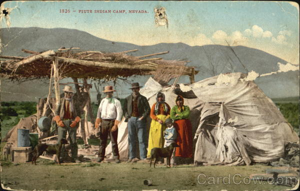 Front: 1826 PIUTE INDIAN CAMP, NEVADA. Back: MADE IN AMERICA BY EDW H. MITCHELL AT SAN FRANCISCO. FOREIGH ONLY
