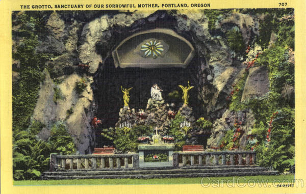 Front: 707 THE GROTTO, SANCTUARY OF OUR SORROWFUL MOTHER, PORTLAND, OREGON 78-H1617 Back: "C.T. ART-COLORTONE' REG.U.S. PAT. OFF.-WESLEY ANDREWS CO., PORTLAND, ORE.