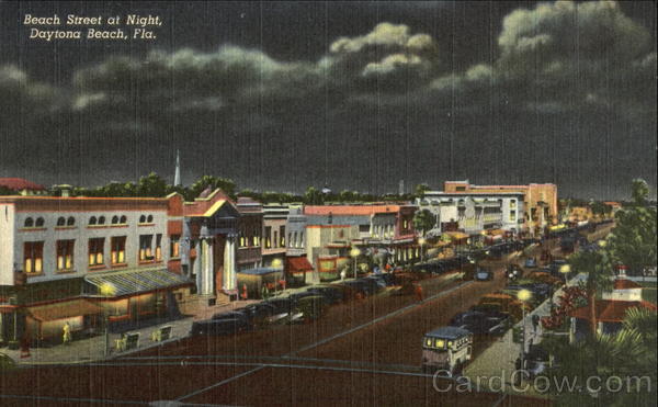 Front: Beach Street at Night, Daytona Beach, Fla. Back: D.13-DAYTONA BEACH CARD CO., DAYTONA BEACH, FLA. PHOTO BY R. H. LE SESNE 8A-H12 23