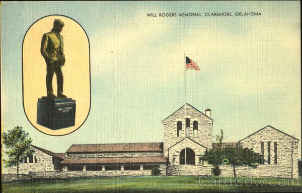 Front: WILL ROGERS MEMORIAL, CLAREMORE, OKLAHOMA WilLL ROKERS Back: MADE IN USA SWECOUC Pub. By Hy-Grade School, Supply Co., Oklahoma City: سوالاهلنا بها M. 49224
