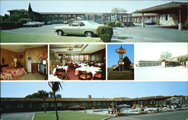 Series 120687 Located near beautiful Mission Santa Clara and Santa Clara University. Open 24 hours. 120 deluxe air-conditioned rooms. Suites with king size and executive twin doubles. Color TV. Year around heated pool. Room service. Direct dialing phones. Meeeting and banquet facilities for up to 400 people. Gourmet dining or and intimate breakfast a specialty. Cocktail lounge with dancing and entertainment nitely. Wedding receptions |