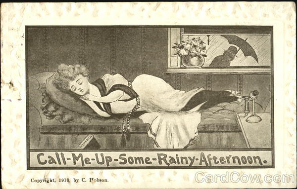 Front: Call-Me-Up-Some-Rainy-Afternoon. Copyright, 1910, by C. Hobson. BAX Back: POST CARD AUG 1 7- 204 1910 Mr. B. Storbyel 219 gion St Hartford M295-12. Printed in U. S. A..