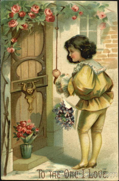 A boy ringing a door bell