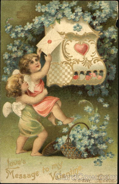 Front: འཇཀ་ love's to my Message to Valent From Flora Back: International Art Publ NEW-YORK BERLIN ADING FEP 14 10-PMING 5 FEB 14 P REG 1903 FOR ADDRES ONLY Hohing you a happy time. BLACE DSTAGE AMP PPP Miss Annie Lieb West Luspo RFD#. Pa