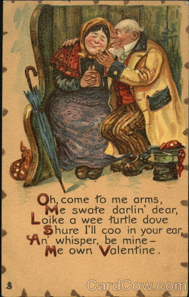 Oh come to me arms, Me swate darlin' dear, Loike a wee turtle dove Shure I coo in your ear, An' whisper, ,be mine- Me own Valentine