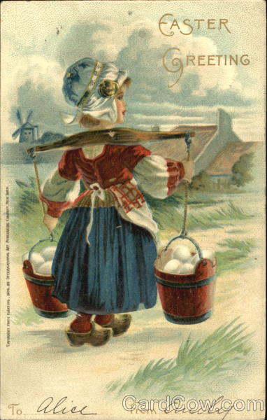 Front: COPYRIGHT FROM PAINTING, 1906. BY INTERNATIONAL ART PUBLISHING COMPANY, NEW YORK То alice To From Quily REETING EASTER Back: INTERNATIONAL ART PUBL. CO. PRINTED IN GERMANY NEW YORK. RH Miss Alice Lez Сивить Washingt FOR THE ADDRESS