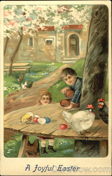Front: A Joyful Easter Back: 1.00. APR 131 1-30P Floßerġg mes bas Master & ONE C Yours heus to Griswold lay easter eggo when your father gets th her honey builds حامل 82 Thompson Ave. East Haven Comes Ser. 641 4-17-11